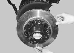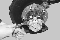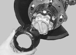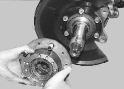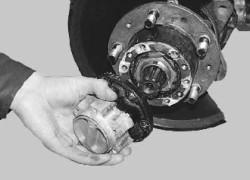 Ступицу переднего колеса можно снять в сборе с тормозным диском или без него. В случае замены ступицы предпочтительней второй способ, так как в запасные части ступицу поставляют без диска.