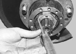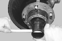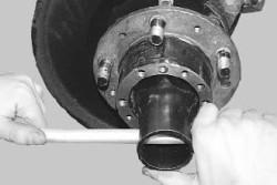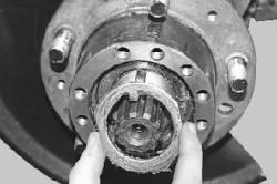 В случае очень плотной посадки внутренних обойм подшипников ступицы (ступицу не удается снять), воспользуйтесь съемником.