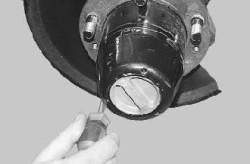 При стопорении гаек подшипников ступицы загибайте лепестки замочной шайбы на грани обеих гаек.